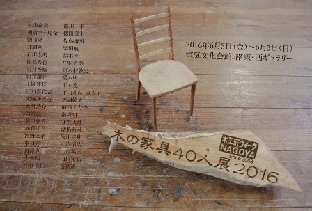 展示会 木の家具40人展2016 日時 6月3日(金)~5日(日) 10時~18時30分 場所 電気文化会館5階東西ギャラリー(名古屋市中区栄)